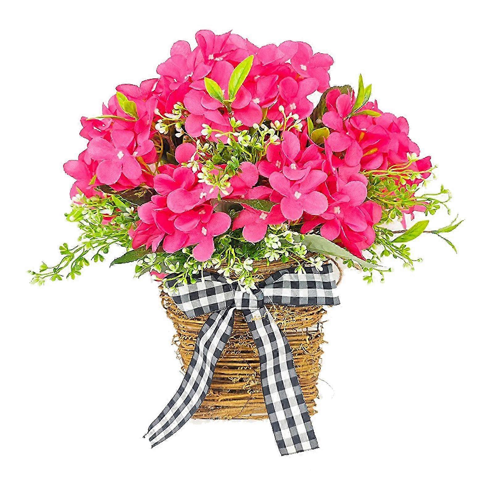 Summer Pink Geranium Flower Basket (38CM*30CM*8CM) for Front Door Decoration