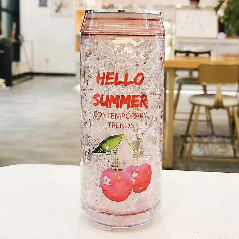 Summer Plastic Outdoor Sports Double Layer Cold Water Cup Pink 350ML
