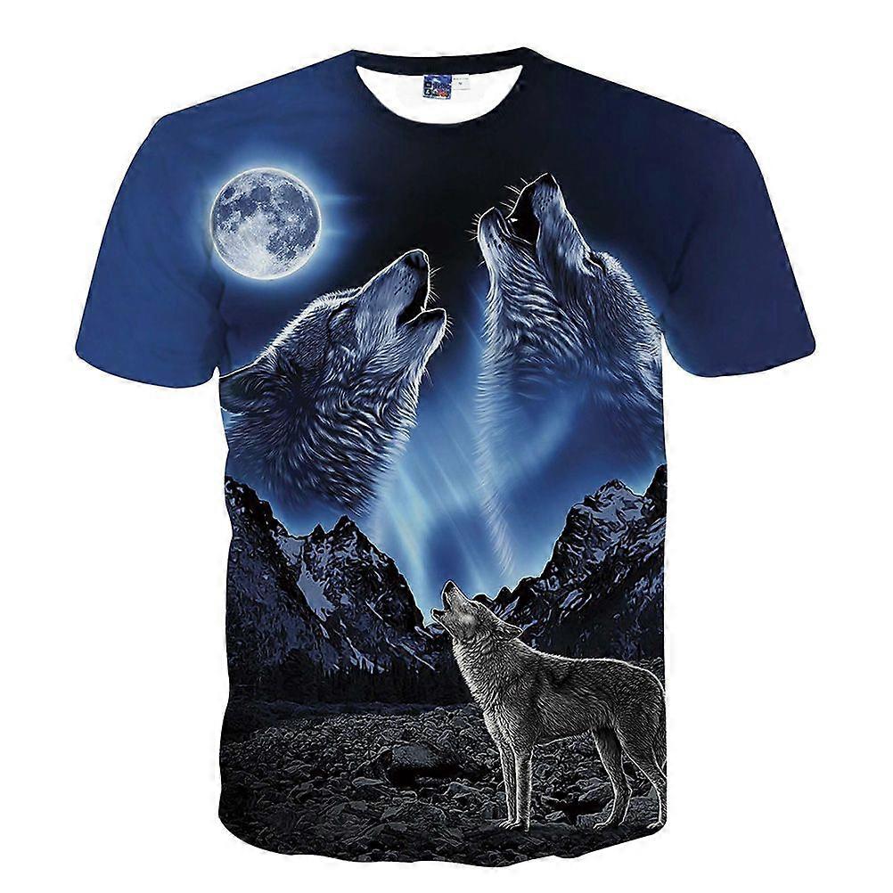 Summer Fashion Men's T-shirt Howling Wolf 3D printing T-shirt Loose V-neck Shirt for Men - Size L