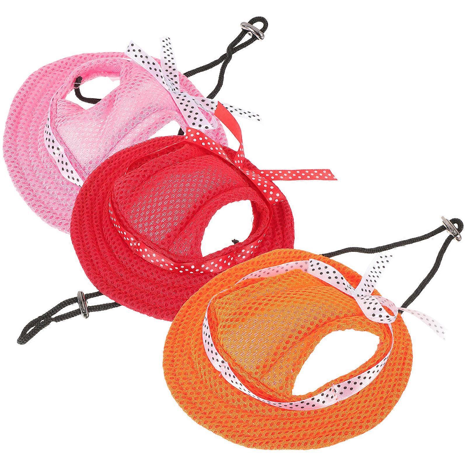 3pcs Decorative Dog Sun Hat for Summer Outings & Parties – Breathable Pet Hat with Ear Holes, Stylish Festival Accessories for Dogs