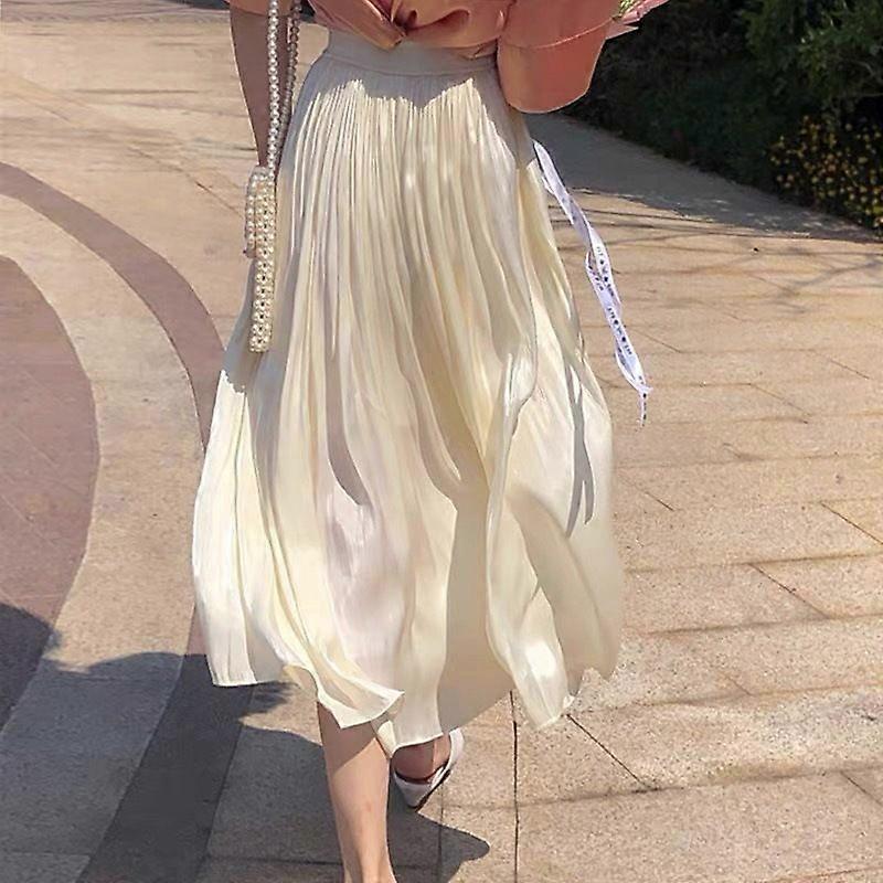 High-End Streamer Gauze Skirt For Women In Summer Pearlescent Skirt Temperament Willow Wrinkled Summer Mesh Skirt