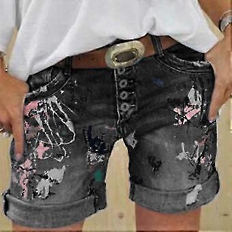 Summer Women's Fashion Tie Dye Print Denim Shorts Casual Holes Rolled Up Jean Shorts