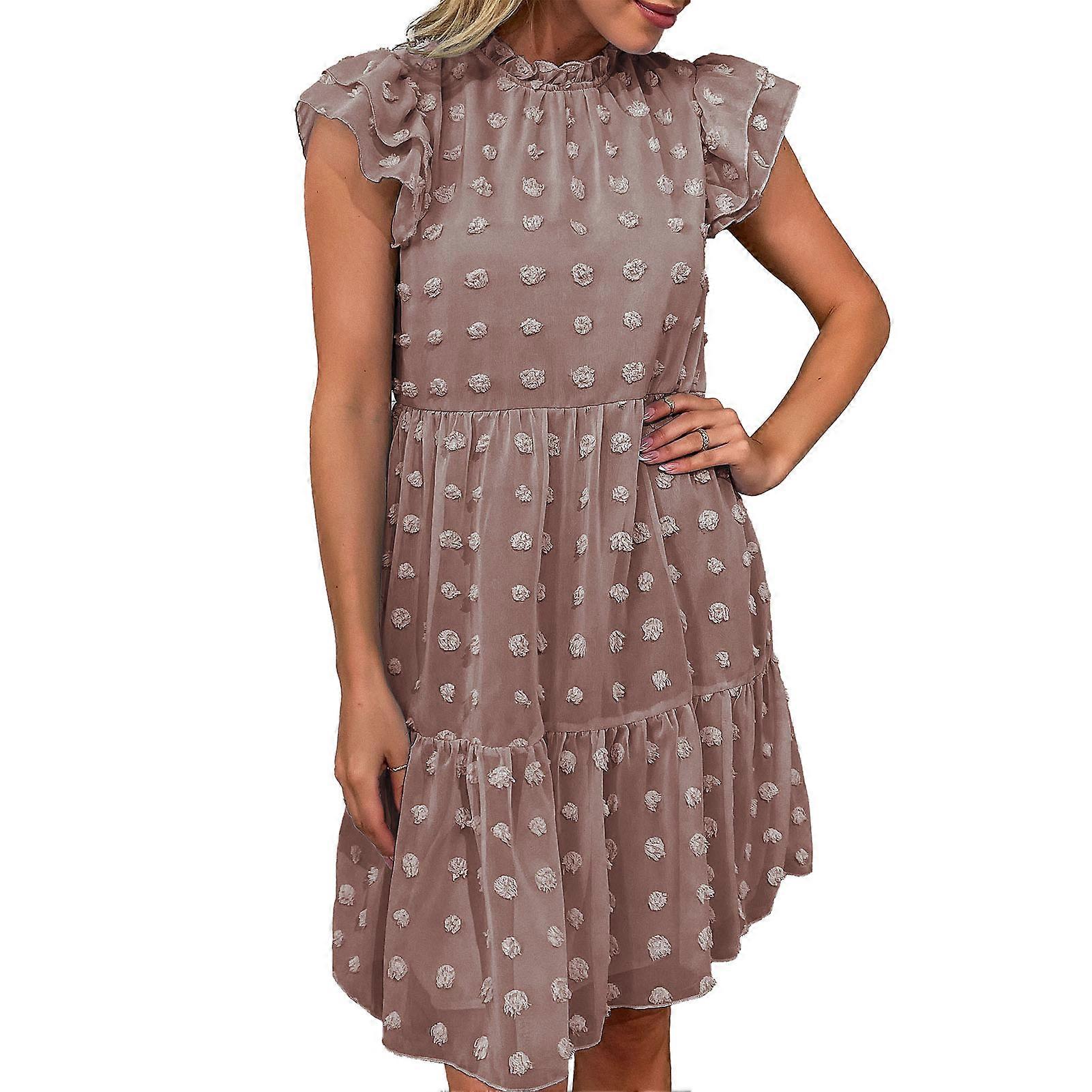 Summer Women Loose Chiffon Dress Casual Chiffon Dot Short Sleeve Dress for Evening Dining Work Beach Weddings Watermelon Red S