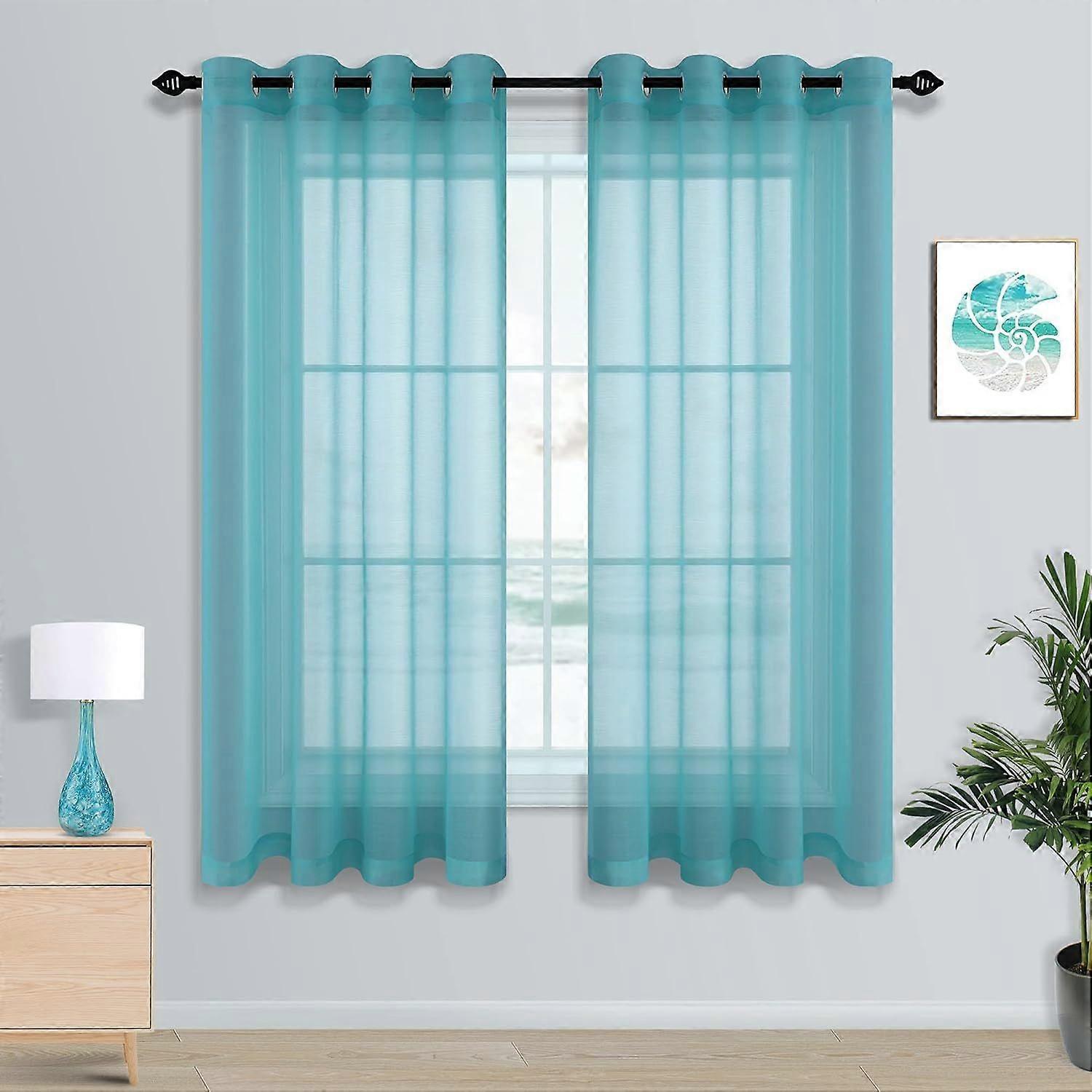 Summer Ocean Decor Teal Sheer Curtains 63 Inch Length for Bedroom 2 Panels Set