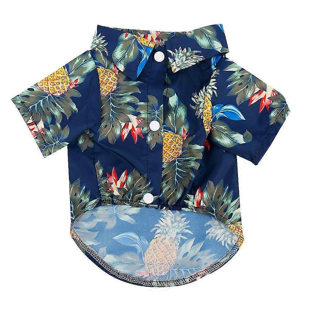 Summer Dog Clothes Cool Beach Hawaiian Style Dog Cat Shirt Short Sleeve Coconut Tree Printing 2022 New Fashion Gift For Pet Navy Blue Pineapple