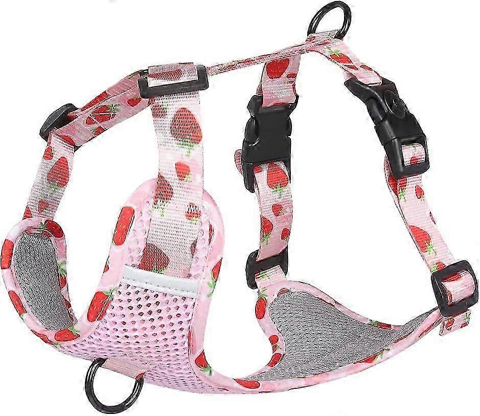 FIT SIZEL:Neck Girth:15.3-20.4'',Chest Girth:24.4-30.7''. Suitable for 35.3-60.6lb dogs.Please measure your pet's size before purchasing.ADJUSTABLE STRAPS Adjustable neck and chest straps design, easy to wear and take off. Both the neck girth and the chest girth can be adjusted.MESH MATERIALDog harness is made of high quality fabric, with mesh, soft and breathable, comfortable to wear and skin-friendly. Prefect for summer.DURABLE COMPONENTS & 2 D-RING DESIGNDurable buckle, not afraid of bursting, stable to wear, not easy to fall down. Better control and assistance for your dog when outdoors. Equipped with sturdy D-ring design, both on the chest and back, you could use it with your own leash.FRUITS PATTERNSLovely fruits patterns, summer style, fashion and cooling. Bright 4 colors to choose from, make your pet looks more popular and attractive.