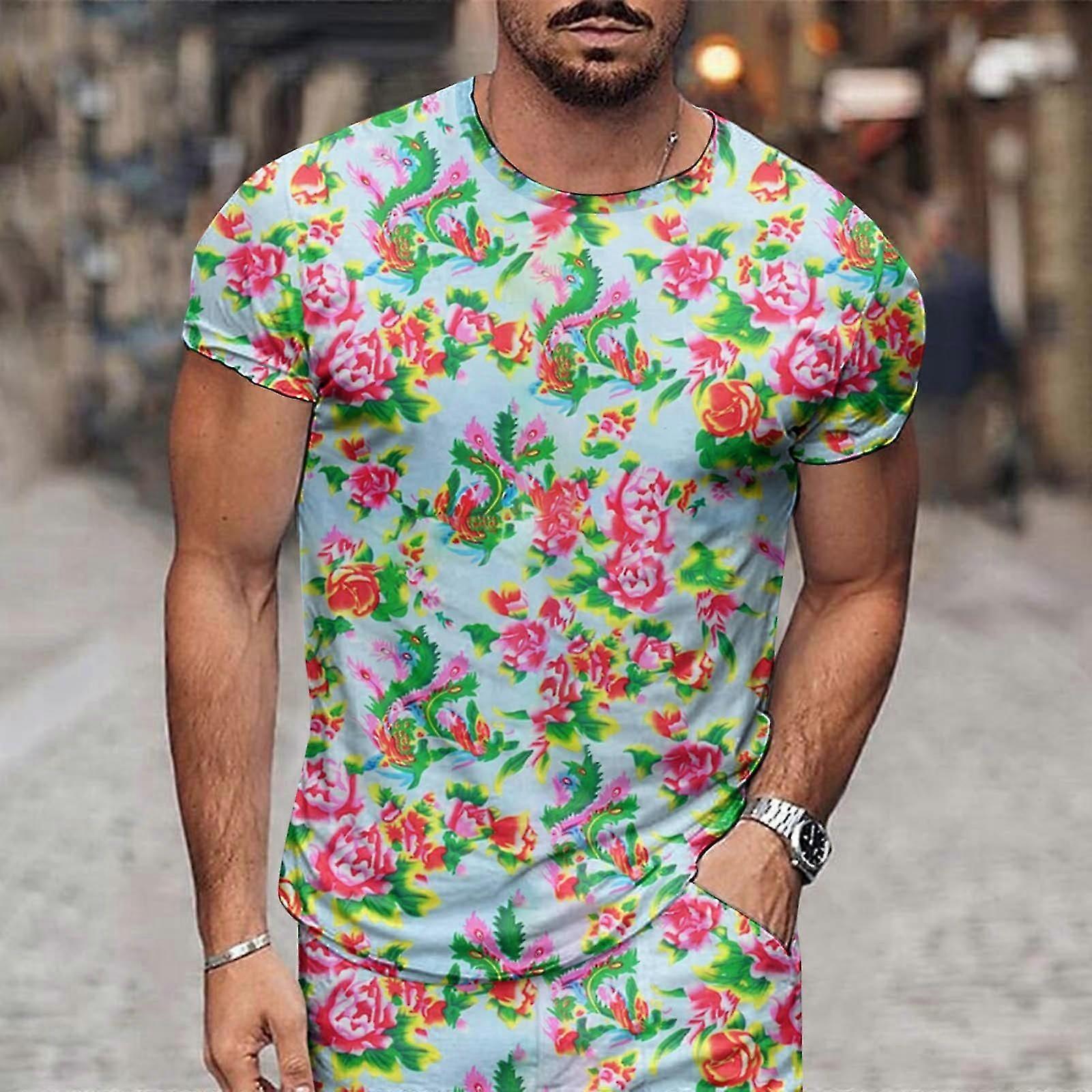 Summer Floral Men S T-shirt Northeast Big Flower Ethnic Style Tees Tops Chinese Fashion Short Sleeve Harajuku Casual T Shirt