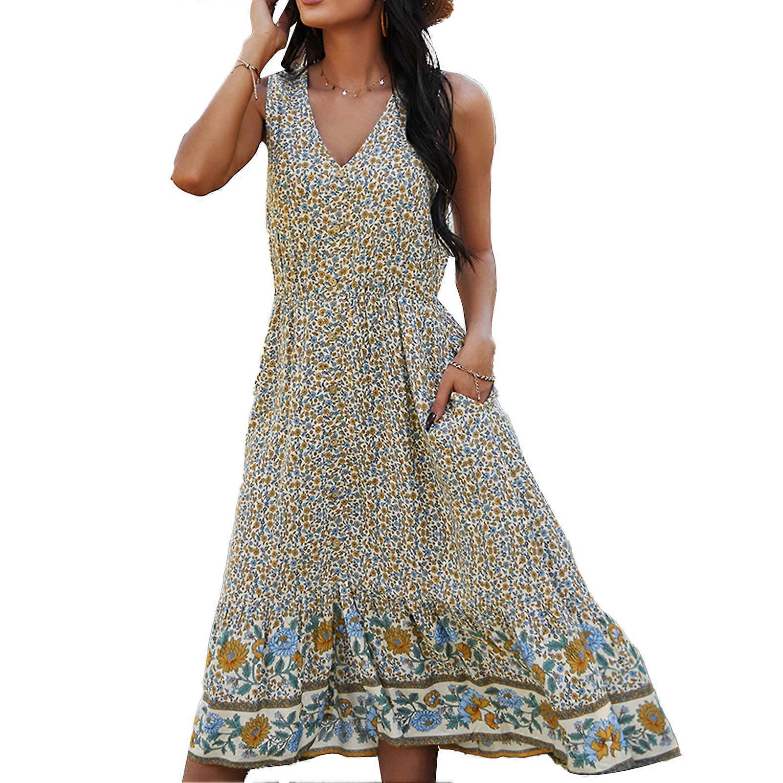 1、Summer Dress: This summer dress is designed in sleeveless and V neck, keep you always cool in hot summer 2、Casual and Loose: The mid waist can be elasticated according to your own waistline, no worry about strangling the meat, and can extend the line of the legs 3、Floral Pattern: The small floral skirt with big floral ruffle hem on this dress make you more charming and attractive 4、Comfortable and Breathable: The floral dress is made of viscose fiber fabric, soft and comfortable, smoothly to the touch, skin friendly and breathable 5、Suitable Occasion: Can be paired with sandals and heels, suitable for beach, country, casual, date, vacation, daily wear etc. Item Type: Summer Floral Dress Material: 100% viscose fibre Fabric: Soft and comfortable, smoothly to the touch, skin friendly and breathable Design: Women sleeveless floral dress, elastic waist dress, V neck midi flowy dress, decorative buttons, ruffle hem Matching: Summer floral dress with sandals and heels to make you the most beautiful star. Occasion: Women floral dress, suitable for beach, country, casual, date, vacation, daily wear etc. Size: S: UK AU: 6-8, US: 4-6, EU:36, Length: 113cm/44.49in, Bust: 93cm/36.61in, Hem: 231cm/90.94in M: UK AU: 10-12, US: 8-10, EU:38, Length: 115cm/45.28in, Bust: 97cm/38.19in, Hem: 235cm/92.52in L: UK AU: 14-16, US: 12-14, EU:40, Length: 117cm/46.06in, Bust: 103cm/40.55in, Hem: 241cm/94.88in XL: UK AU: 18-20, US: 16-18, EU:42, Length: 119cm/46.85in, Bust: 109cm/42.91in, Hem: 247cm/97.24in 1 x Summer Floral Dress