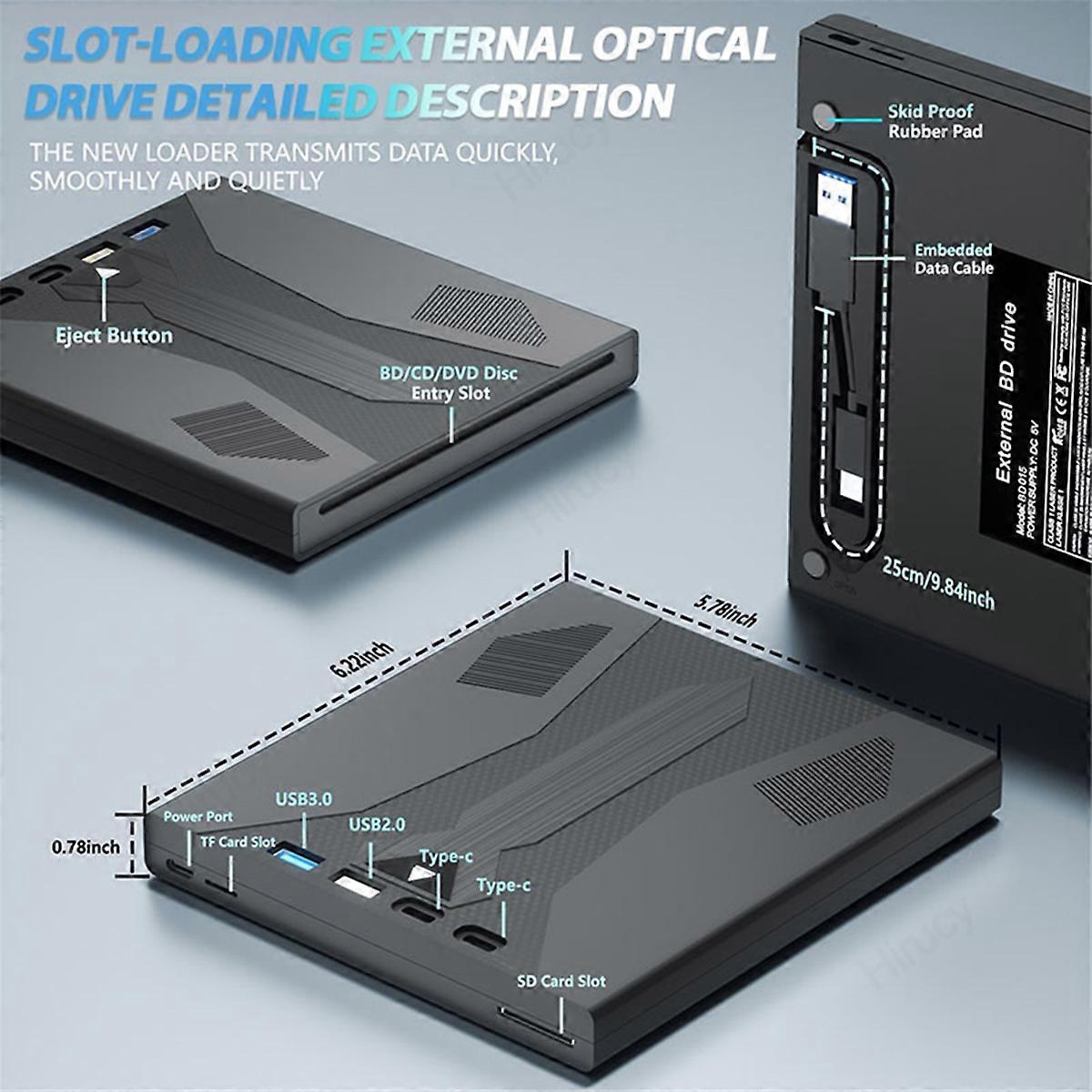 External Blu Ray Drive Burner, Support 100G Disc USB 3.0 and Type-C DVD/CD/BD Player,3D Optical Bluray Drive for Laptop