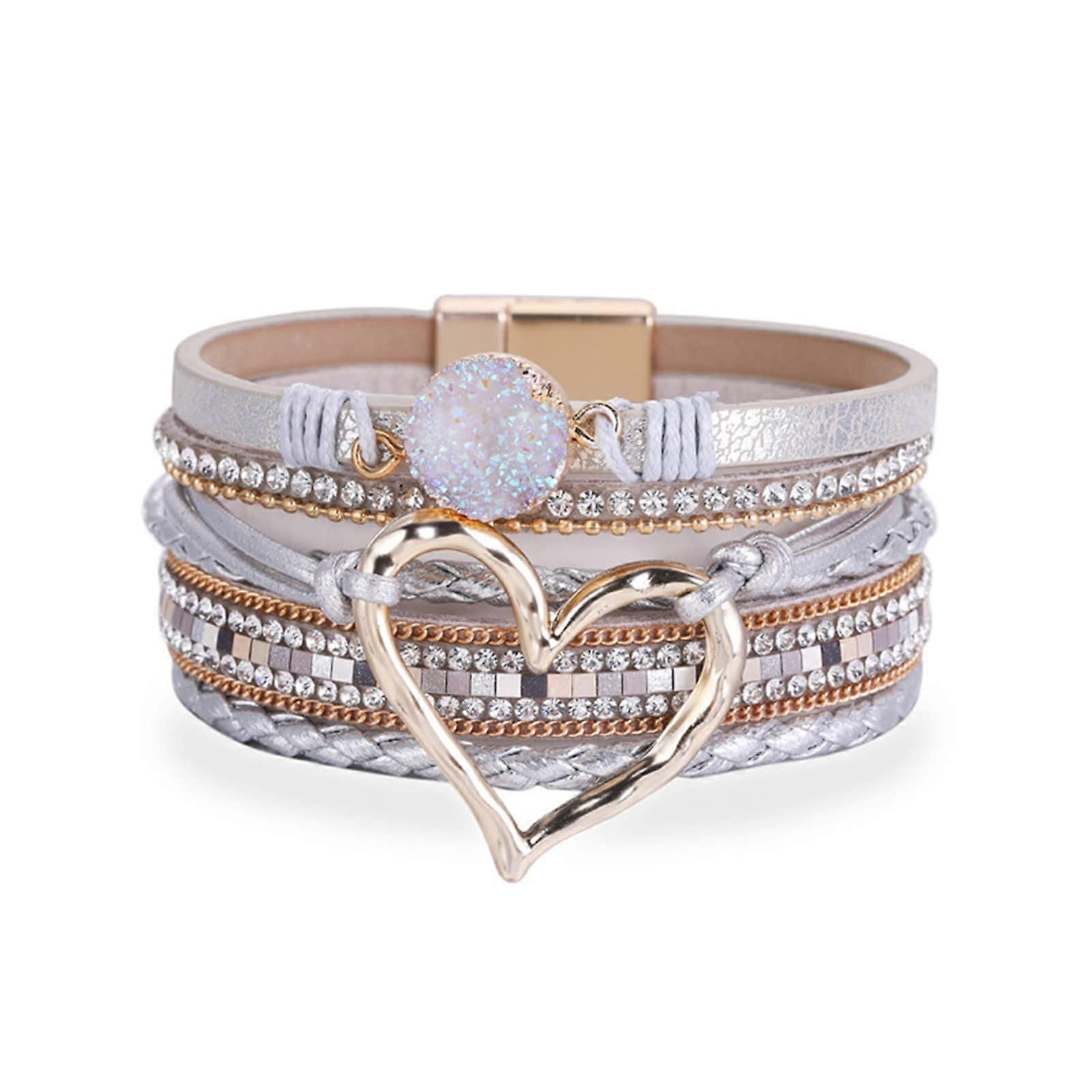 Multi-layer Bohemian Leather Wrap Bracelet Bad Eye Crystal Rhinestone Beaded