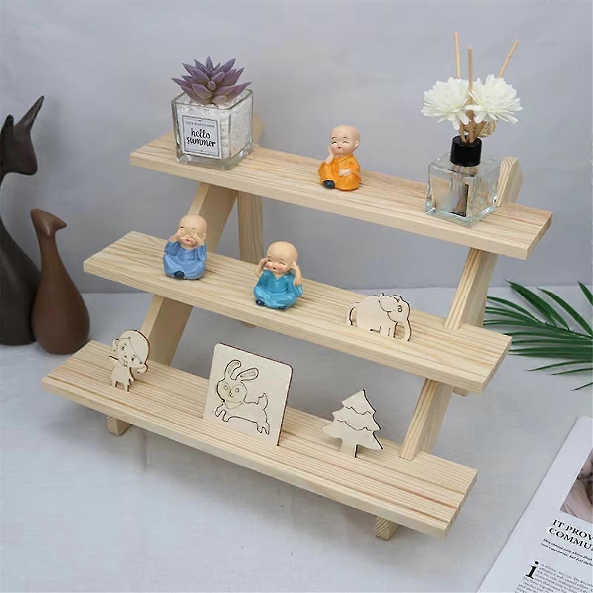 Multi-Tier Wooden Jewelry Display Stand,Ear Stud Holder, Cupcake & Makeup Organizer, Mini Figure Showcase Rack