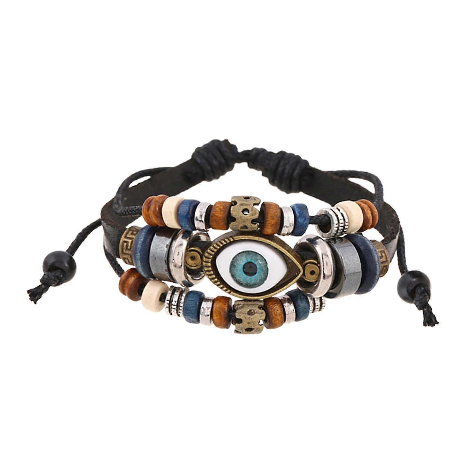 Multilayer PU Leather Bracelet ,Blue Eye Bracelet ,Adjustable Length, Wrist Cuff