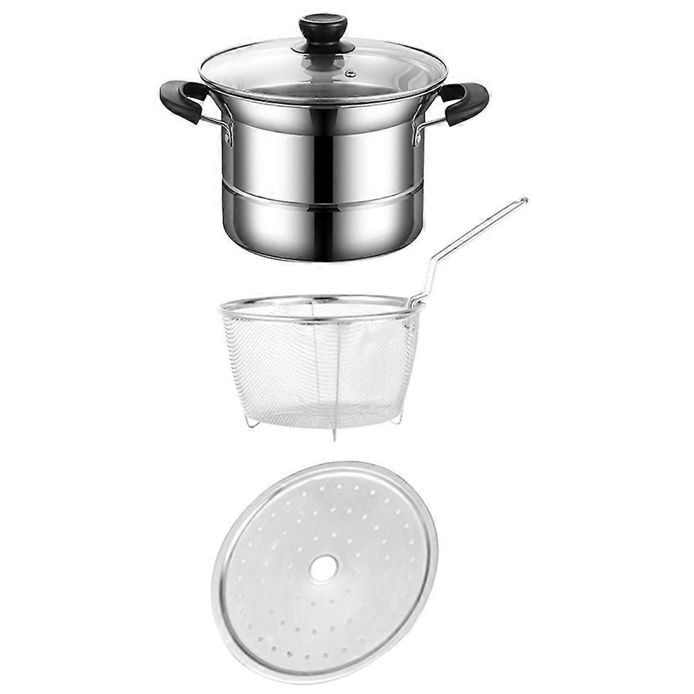 Multifunctional Deep Fryer Pot Stainless Steel Sauce Pans for Home Cooking Silver Multi-Functional 1Set