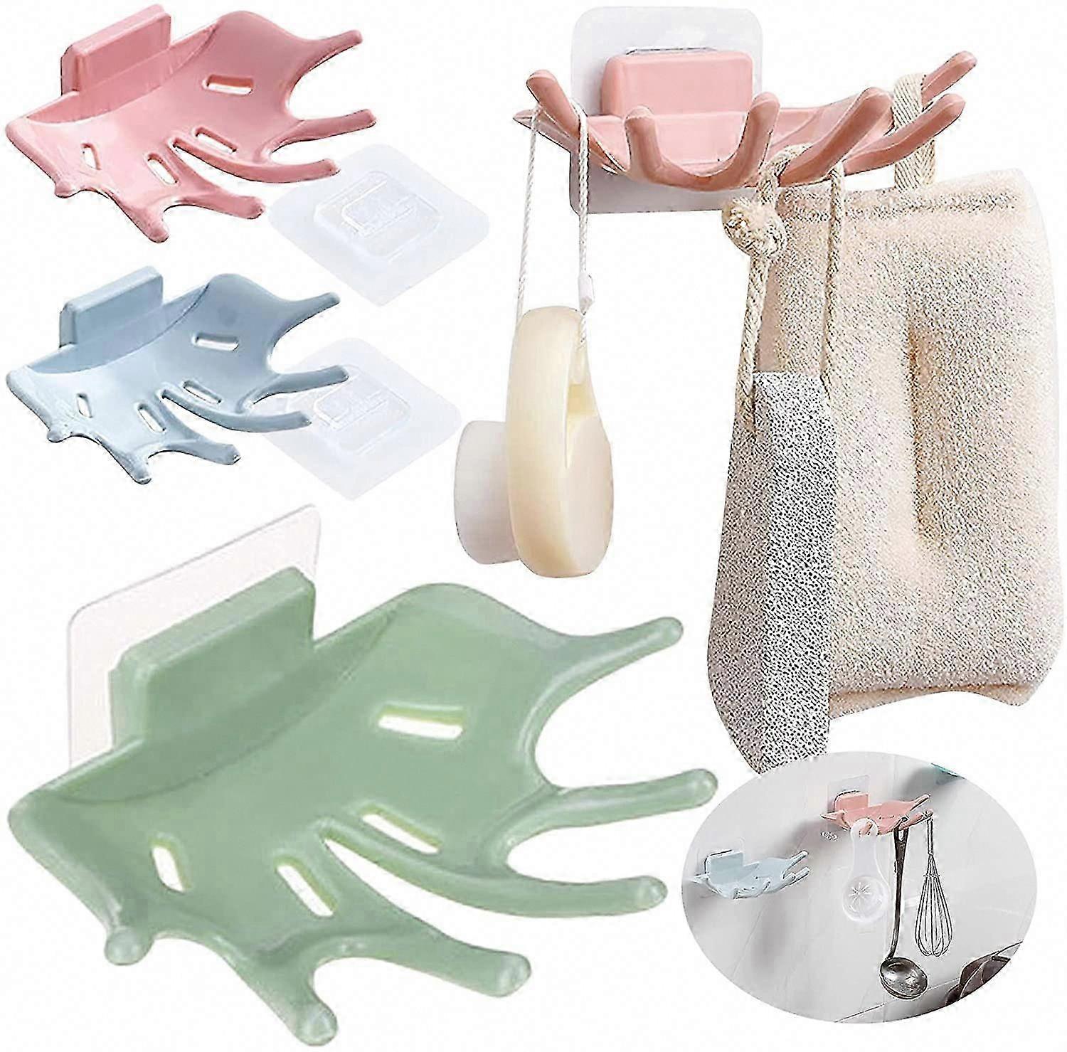 Multi-Functional Bathroom Water Draining Soap Dish Case Holder Drainer Soap Storage Box, Punch-Free Draining Soap Box (Blue,2 pcs)