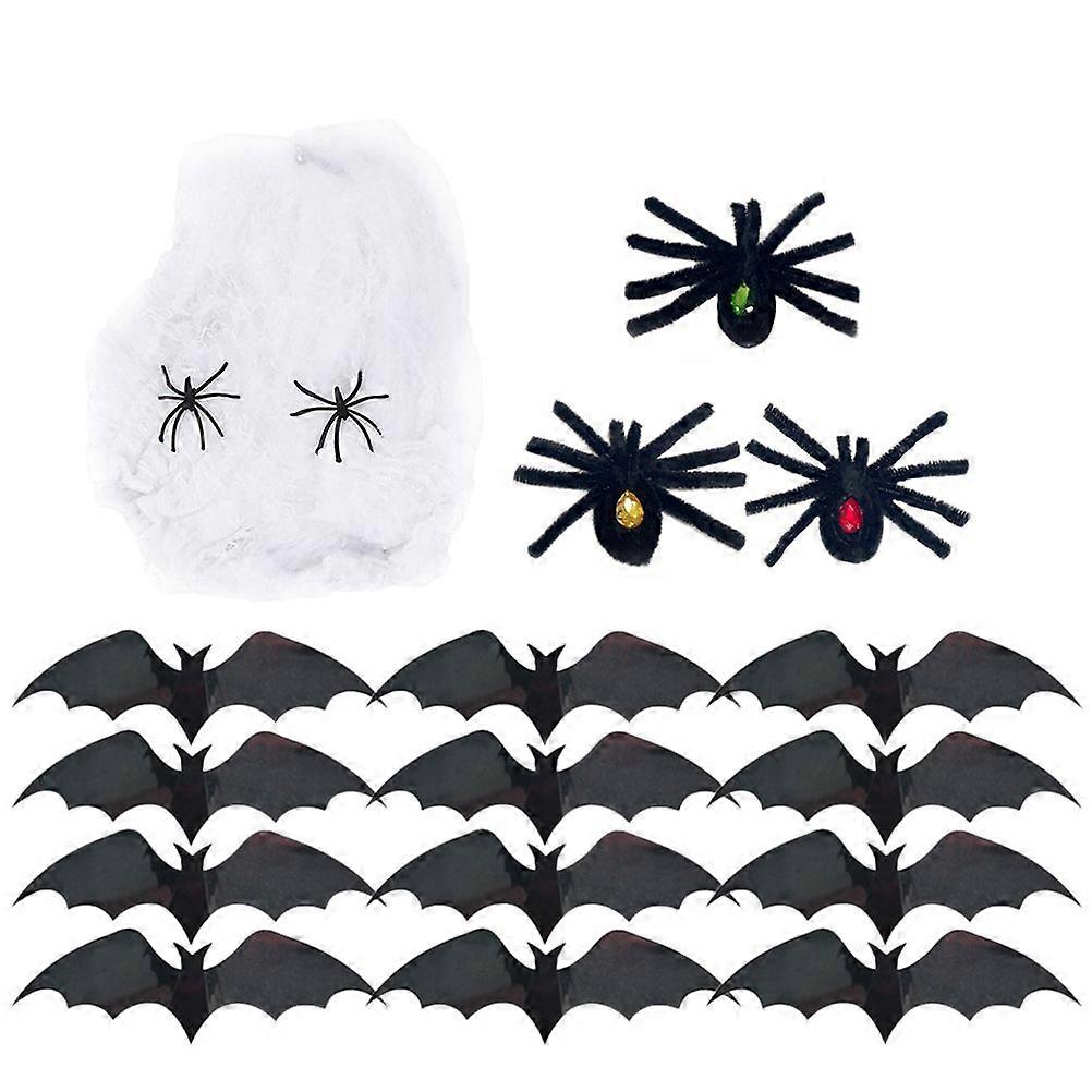 1 Set of Multi-function Fake Bat Spider Layout Spider Halloween Cobweb Prop Halloween Accessory
