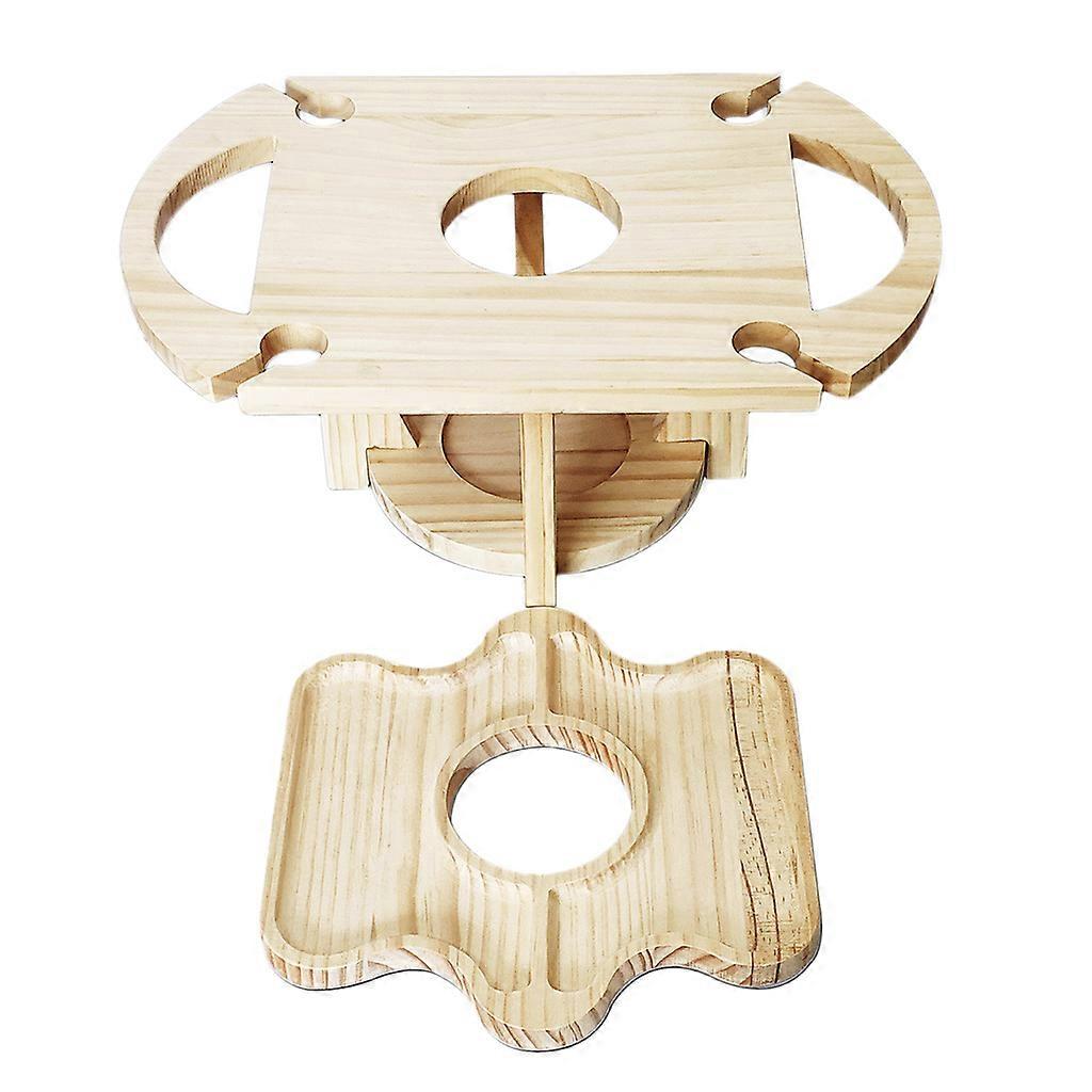 Outdoor Portable Wine Rack Holder with Multifunctional Fruit Tray Foldable Removable Mini Wooden Picnic Table Desk