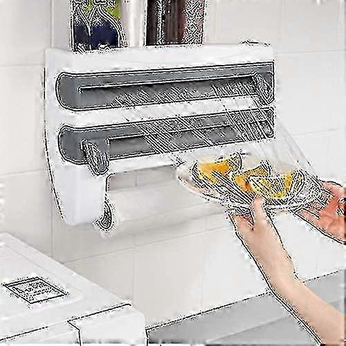 Multifunctional Storage Cutting Rack,4-in-1 Wall-mount Sauce Bottle Storage Holder, Multi-function Kitchen Cling Film Foil Dispenser With Spice R