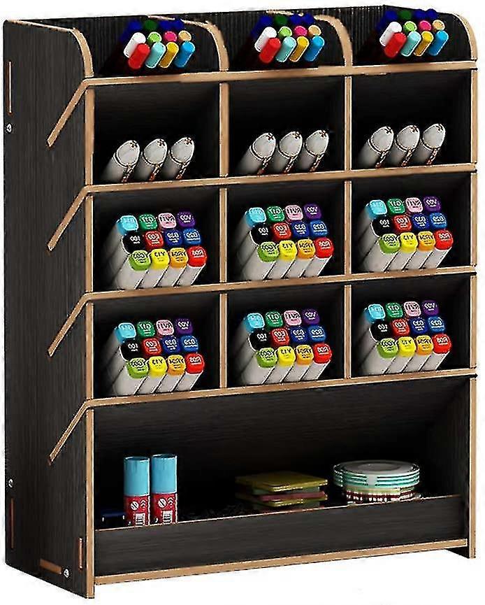 Multi-function Wooden Pen Storage Box for Home, Office & School - Black