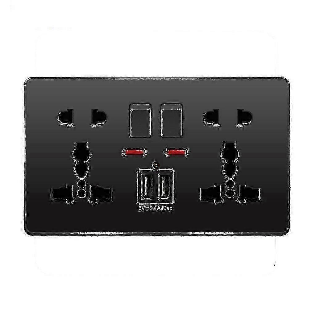 Multifunction 13a Wall Socket Push Button 2.1a Double Usb Charging Ports Three-holeo-hole Home Hr