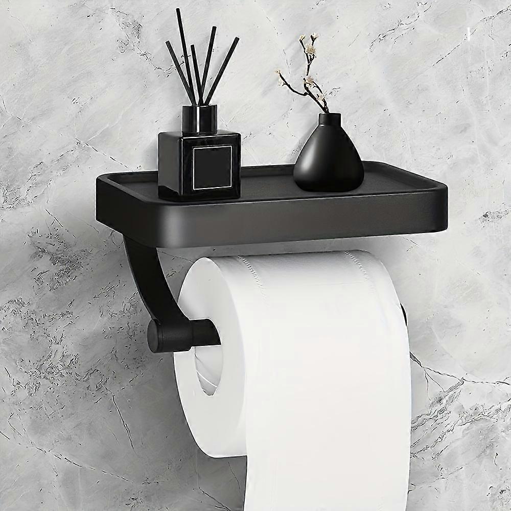 Multipurpose Black Stainless Steel Toilet Paper Holder - Self-Adhesive with Phone Shelf, Rust-Proof & Easy Installation for Bathrooms
