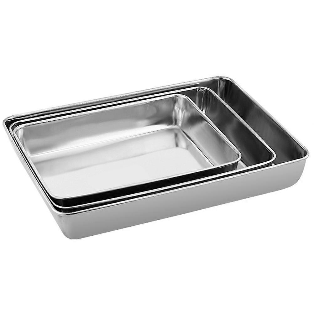 Multipurpose Food Tray Stainless Steel Serving Tray Kitchen Utensil Storage For Family Gatherings Silver 3Pcs