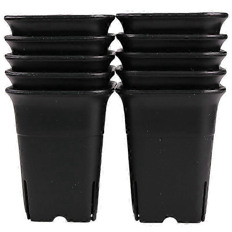Pack of 12 Black Square Plastic Plant Pots for Succulents, Flowers, Cacti and Nursery F