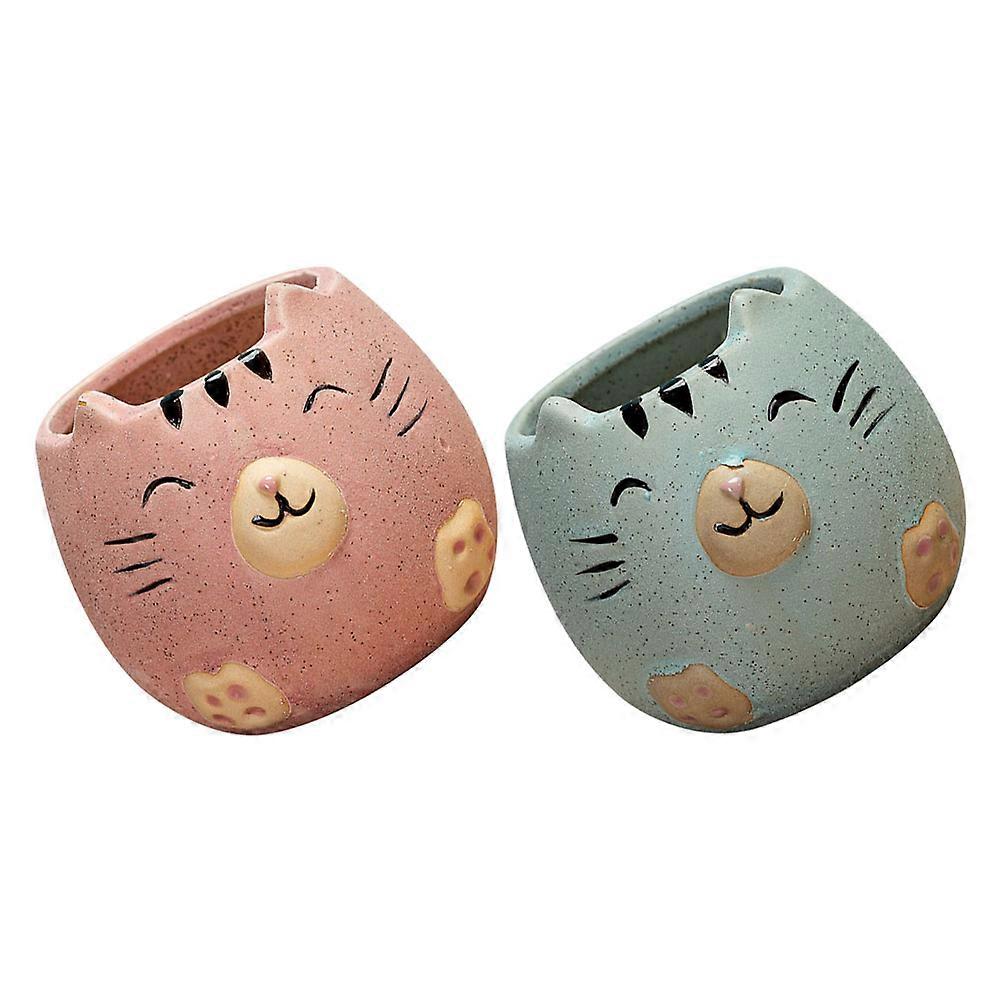 Succulent Ceramic Flower Pot Household Decoration Cat Shape Pink Planting 2Pcs