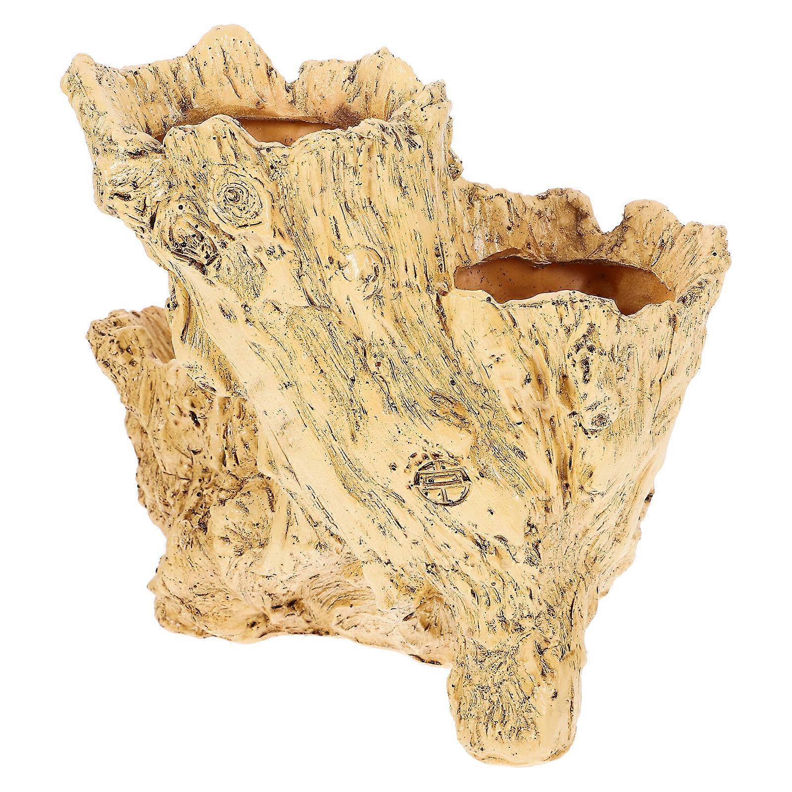 Succulent Planter Pots Resin Simulation Tree Root Flower Pot Tabletop Placement Yellow 8.3×6.3×7.5in Decoration 1Pack