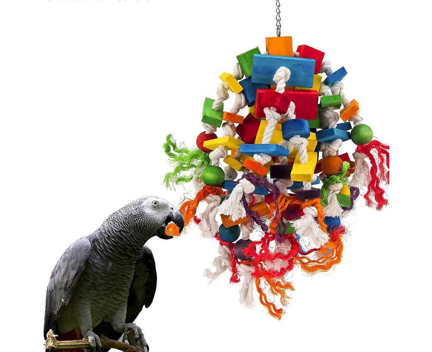 Large Parrot Toy - Multicolored Wooden Blocks Tearing Toys for Birds Suggested for African Grey Cockatoos, and a Variety of Parrots
