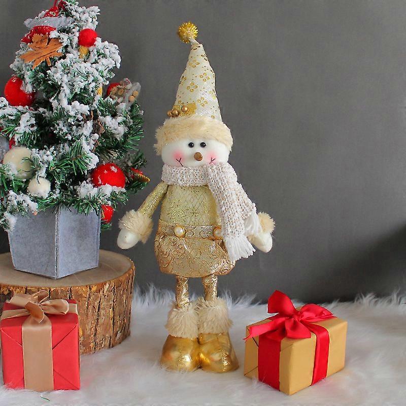 Large Christmas Elk Snowman Retractable Decoration, Large Standing Handmade Plush Doll with Legs Christmas Ornament Home Holiday Decoration, Handmade
