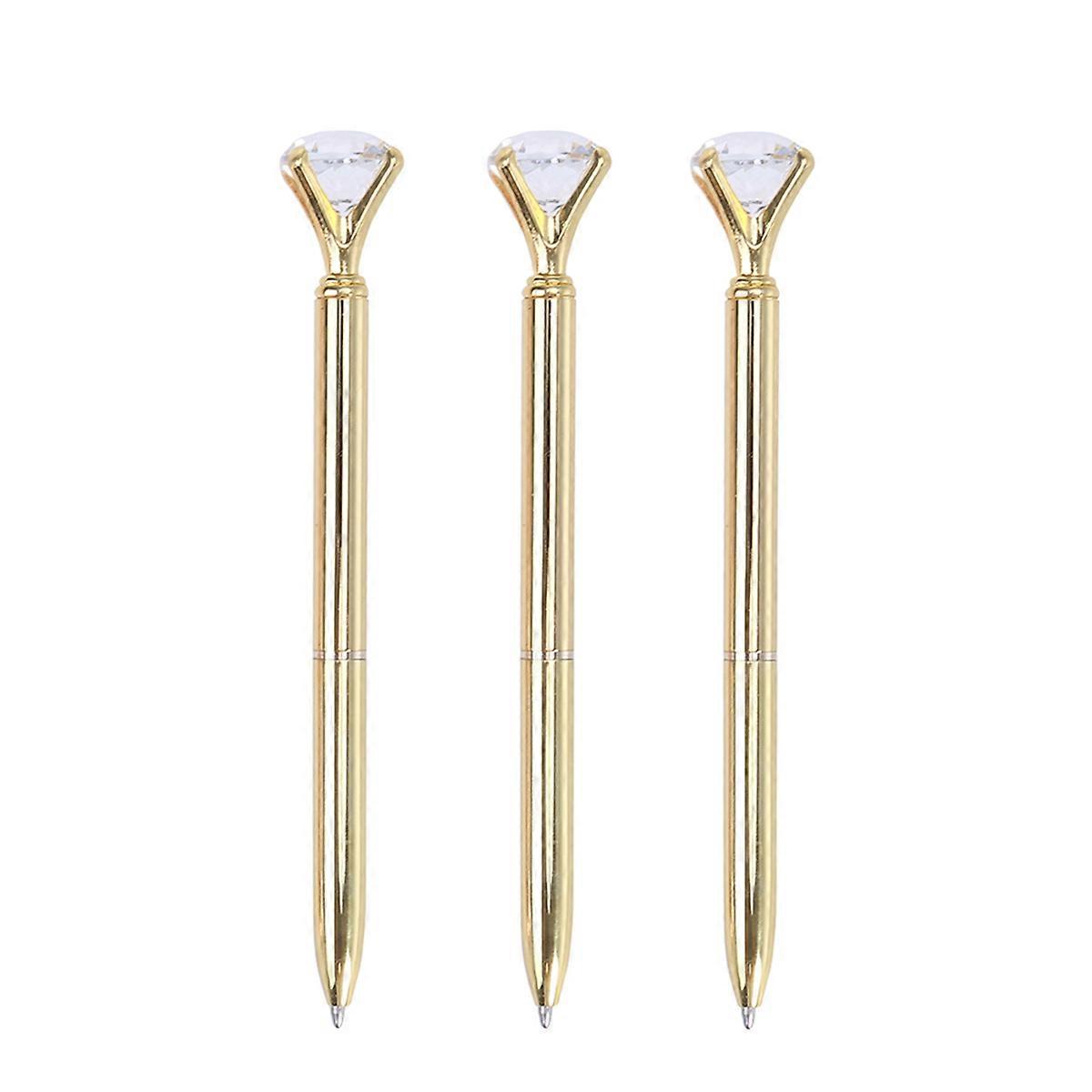 Metal Pen With Big Diamond Crystal Cylindrical -Resistant Stationery 13.8cm x 0.8cm x 0.8cm 3Pcs