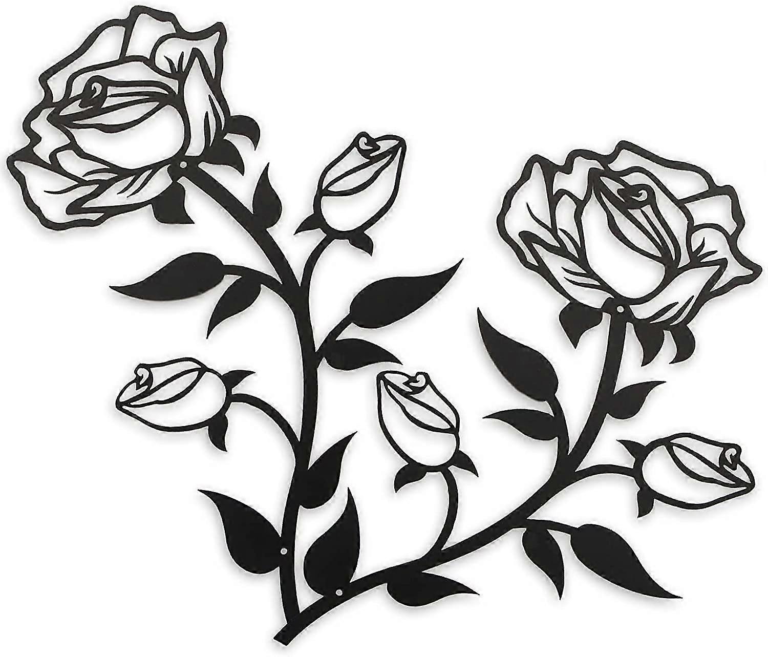 Large Rose Flower Wall Decor, 38CM Tall Black Metal Art Ornament Wall Hanging for Home Bedroom Office Indoor Outdoor (2 Pieces)