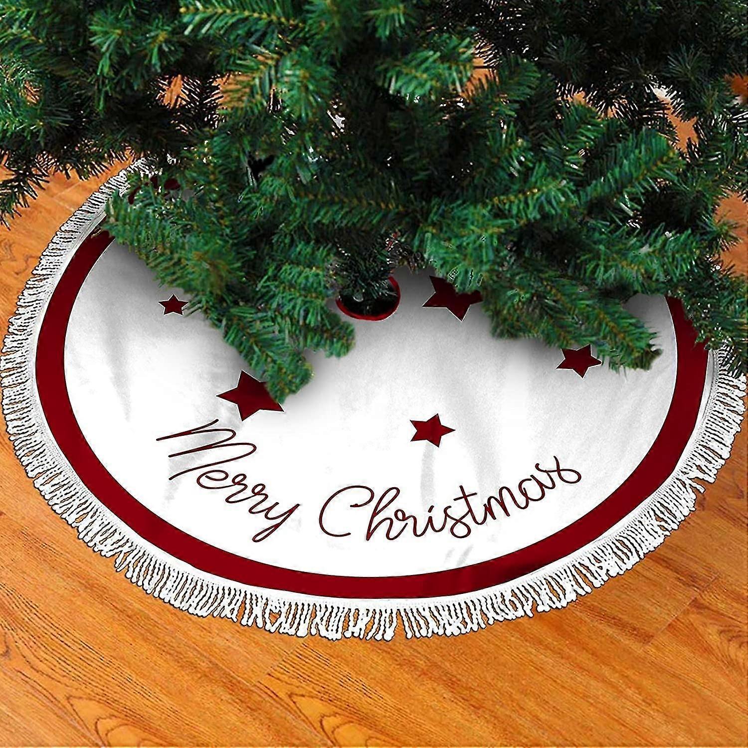Large Fringed Tree Skirt White And Burgundy Christmas Tree Skirt Christmas Tree Base Merry Christmas Decorations Holiday Party Decorations 1 Pc