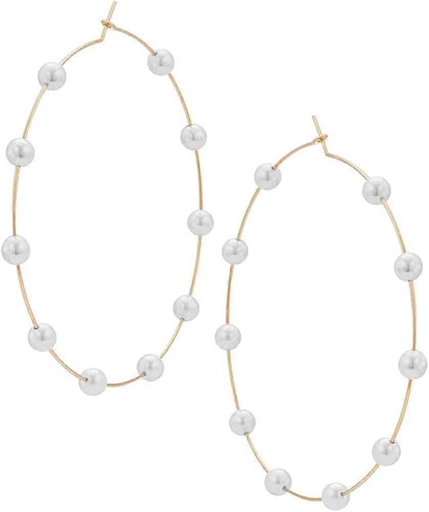 Large Hoops Super Huge Circle Pearls Earrings Thin Dangle Gold Silver Elegant Wedding Women Accessories Jewelry Gift for Her gold 60mm