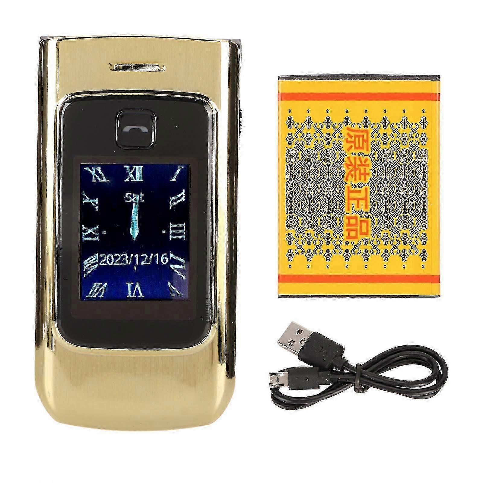 4G Flip Phone For Seniors With Big Buttons Clear Sound Dual Screen Display 4800mAh Battery And SOS Button Gold Color