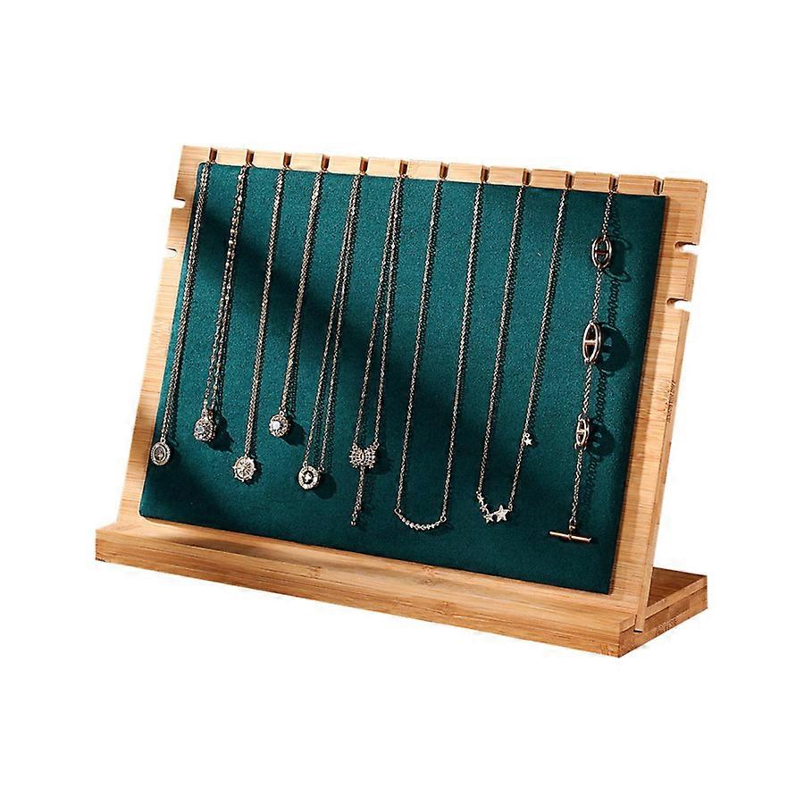 Large Detachable Bamboo Necklace Holder - Green Velvet Display Stand
