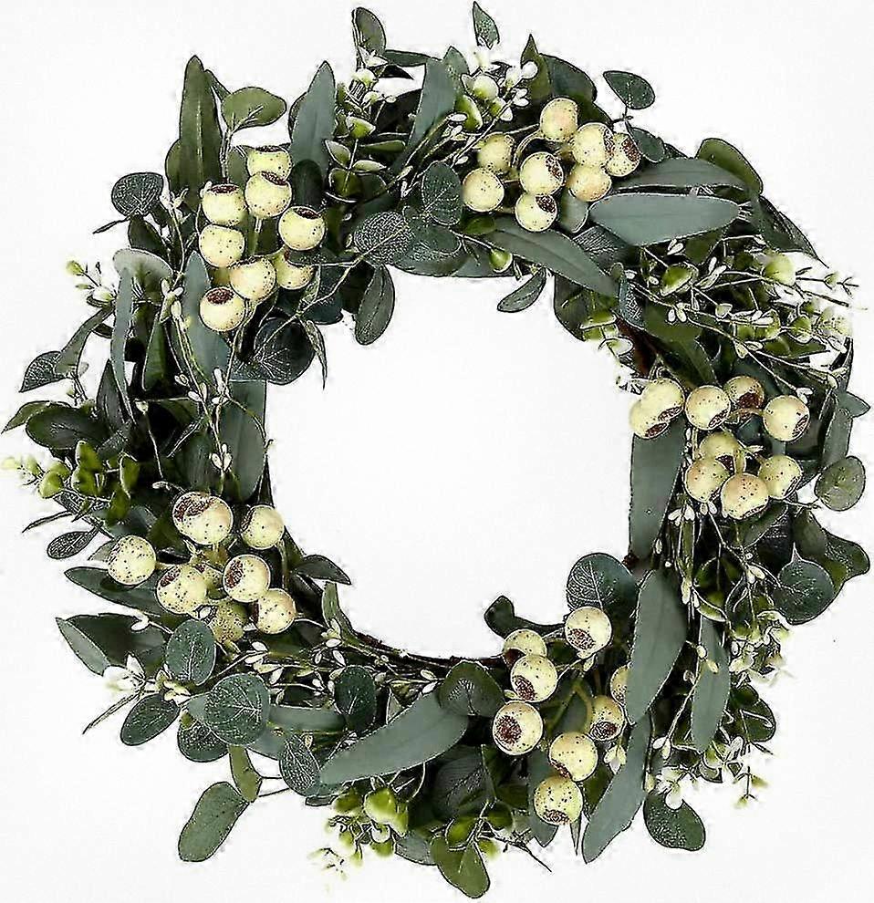 Faux Eucalyptus Leaf Wreath with Large Berries, Spring Summer Greenery Decor for Doors Walls Windows - 20 Inch