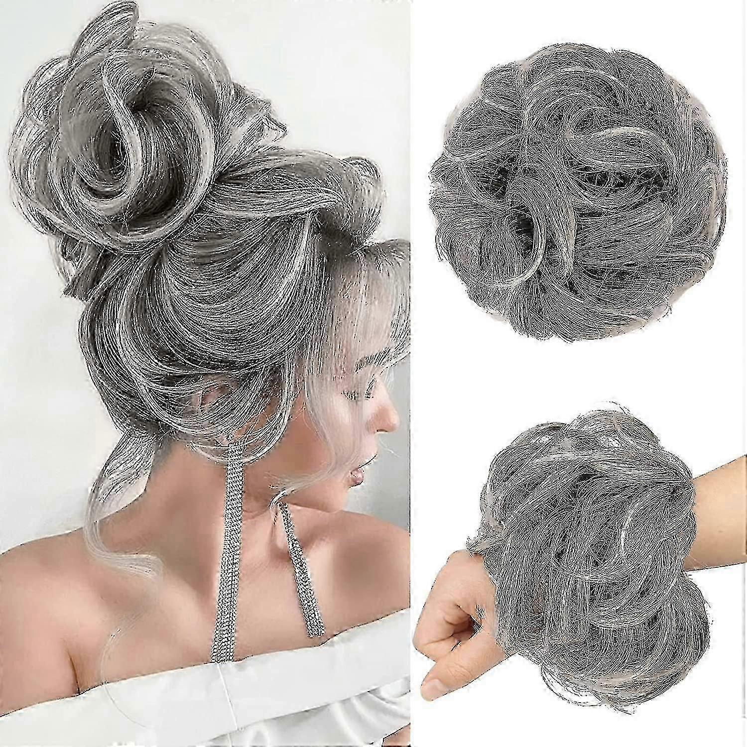 Large Gray Hair Bun Scrunchies Extensions - Messy Bun Hair Piece - Synthetic Salt and Pepper Easy Bun for Women - Tousled Updo Hairpieces Compatible