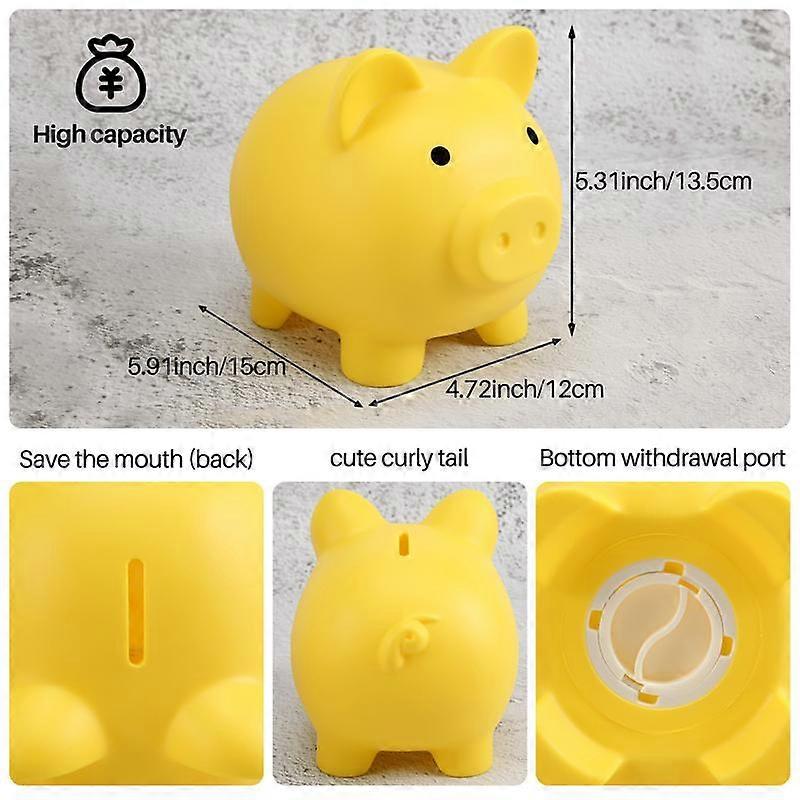 My First Piggy Bank- A bank for young toddlers, start the saving process by adding cash to this cute piggy bank. Unbreakable Money Bank - Made by safe thick plastic material, this cute piggy bank is very sturdy and toddler tough, kids might drop it many times without any damage. Large Size Piggy Bank - This money bank is about 15x13.5x12cm, big enough to hold a lot of coins and cash. Easy Coin Bank for Kids - This well designed piggy bank has a built-in plastic knob at the bottom, easy for kids to keep the money safe or take the money out without breaking the piggy. Practical Gift for Boys and Girls - This piggy bank is great for kids ages 3, 4, 5, 6, 7, 8, 9, 10 years old, as birthday presents, Christmas gifts, and shower gifts. This large piggy bank is also great gift choice for teens and adults who love cute and adorable room decorations. colour: yellow Material: plastic Package Contents: 1 x Large Piggy Bank Only the above package content, other products are not included. Note: Light reflection and different displays may cause the color of the item in the picture a little different from the real thing. The measurement allowed error is +/- 1-3cm.
