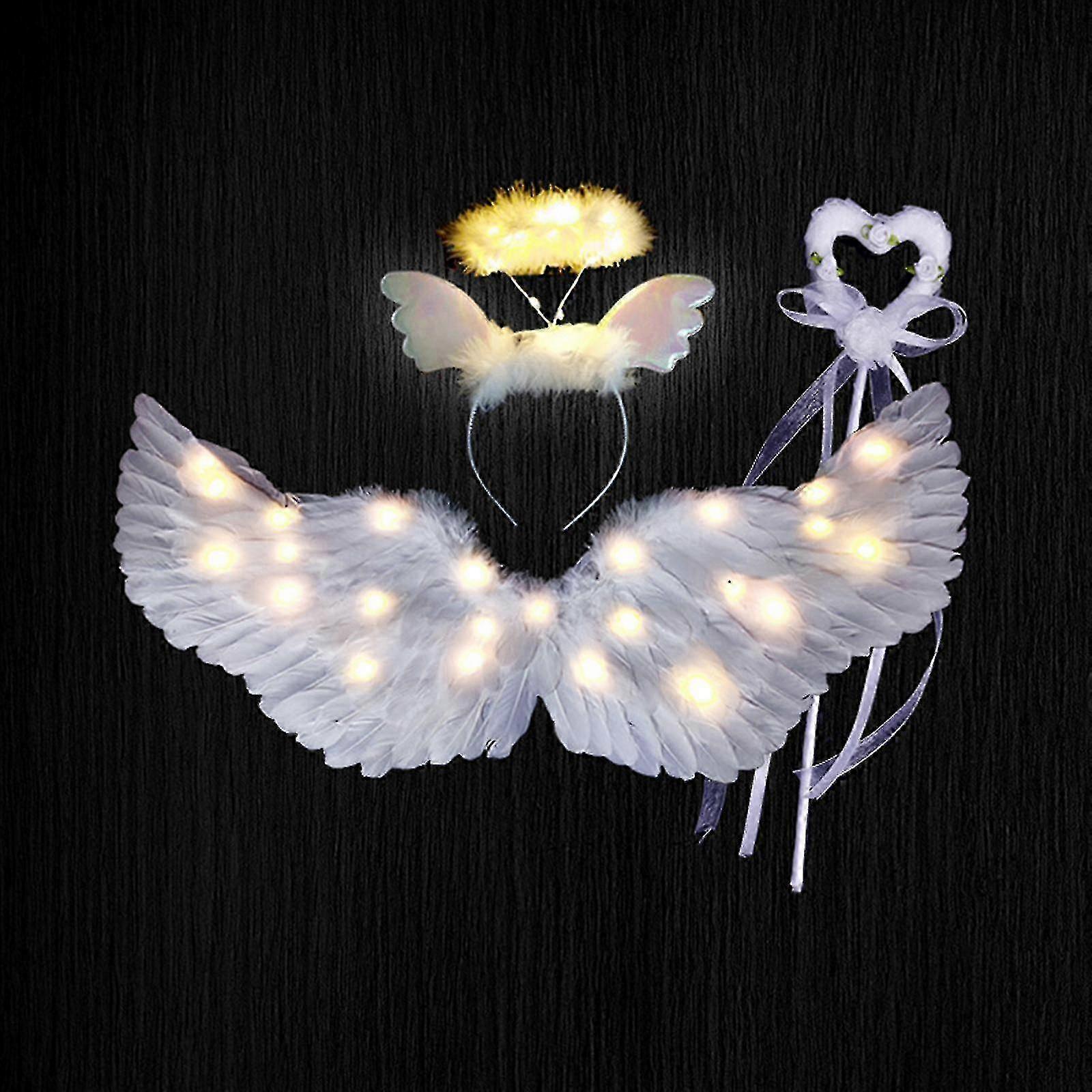 LED-Lit White Angel Wings Costume for Adults, Women & Kids - Perfect for Christmas
