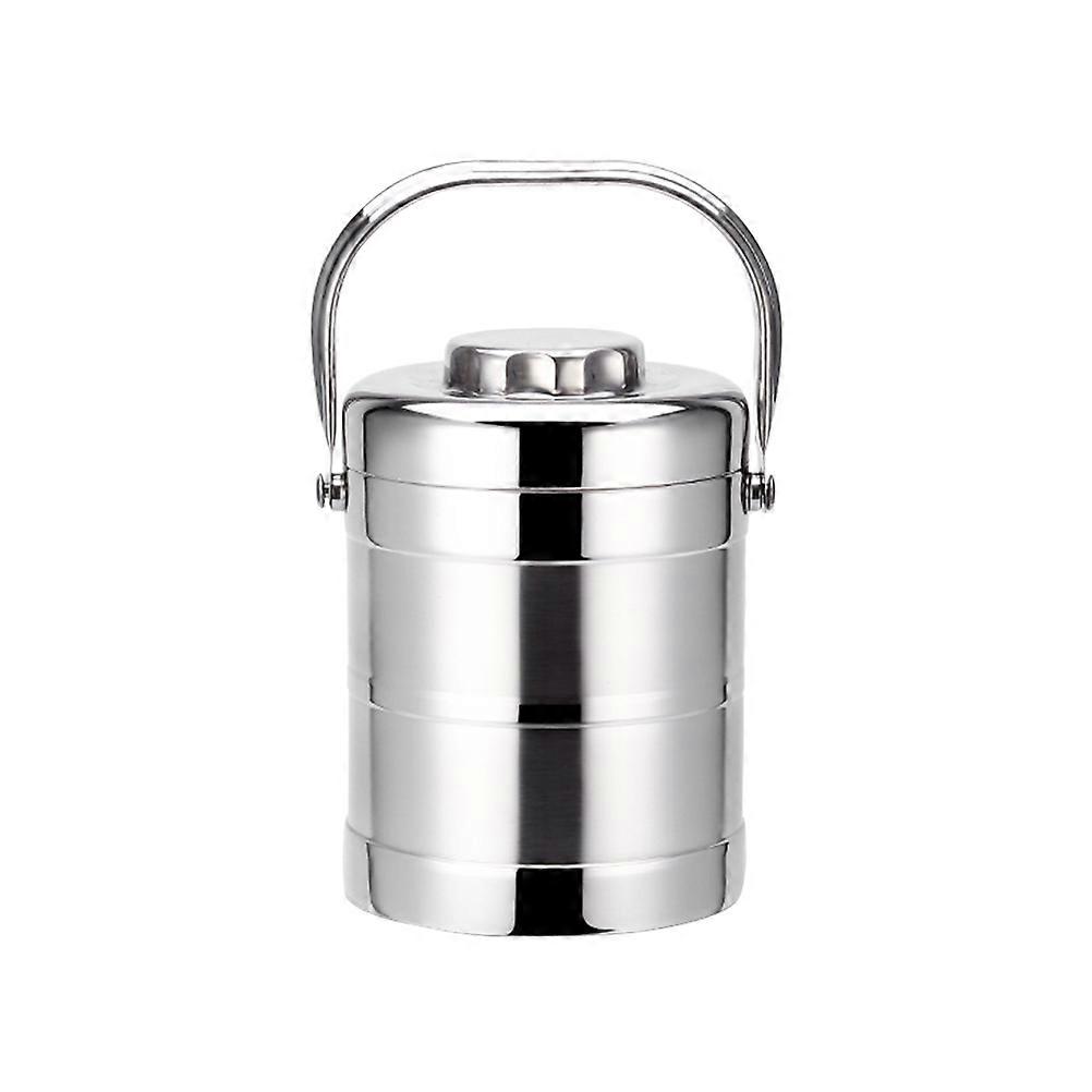 Stainless Steel Thermal Lunch Box For Adults Double Layers Insulation Food Storage Container Silver 1Set