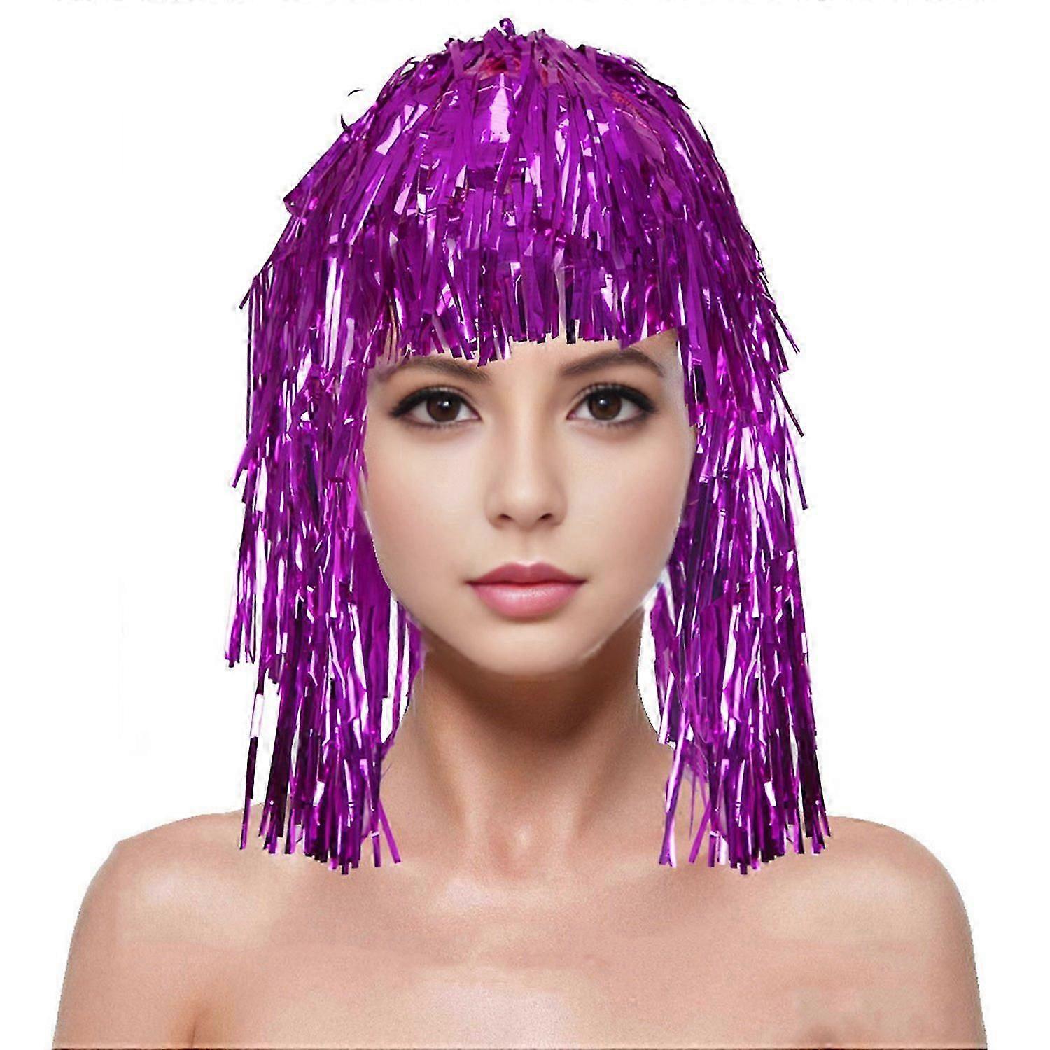 Foil Tinsel Wigs for Adults Fancy Dress Party Shiny Tinsel Wig Metallic Masquerade Disco Hat for