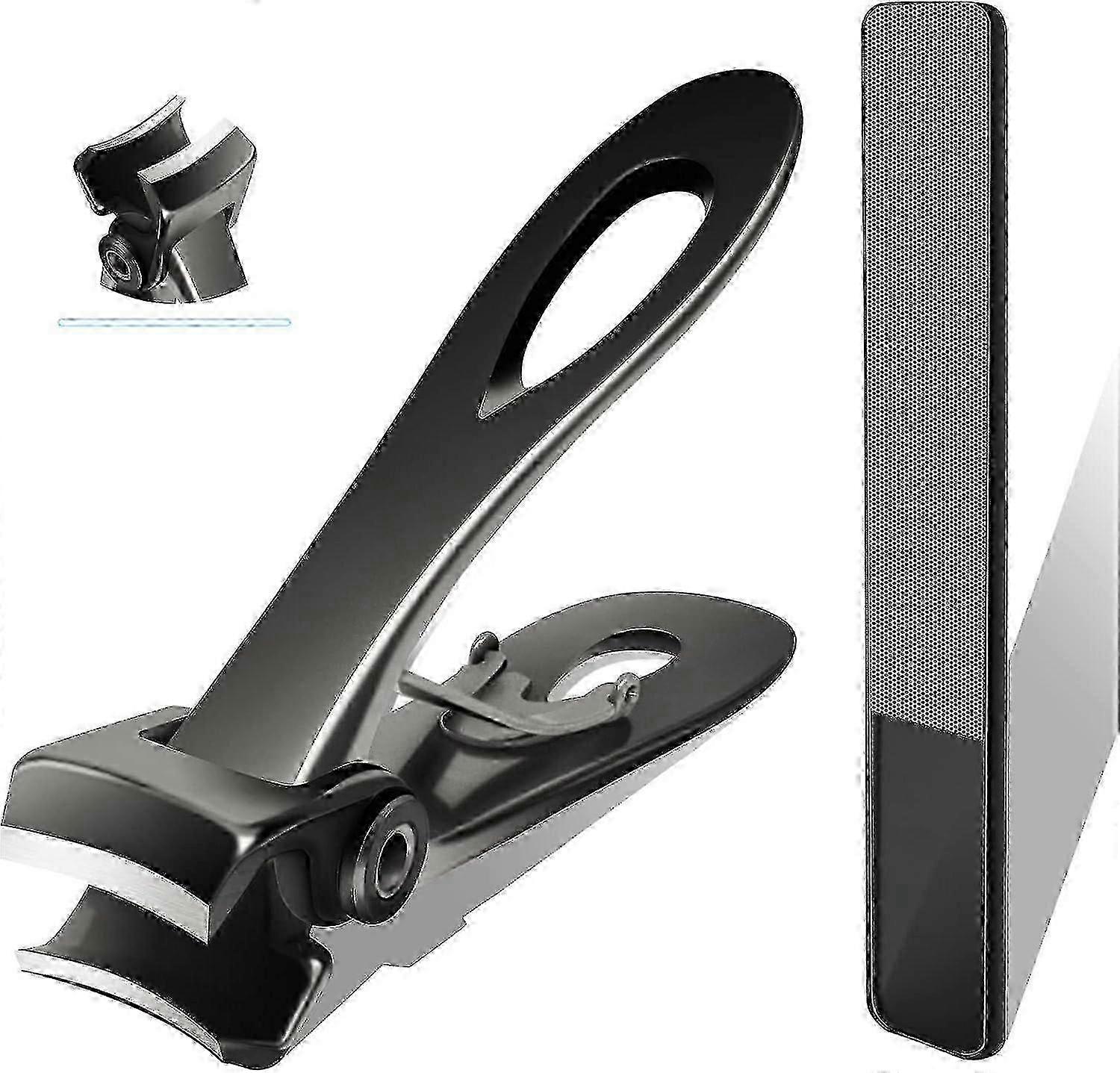 3.54' Long Handle Saves Effort Toenail Clippers:Our nail clippers have 3.54 inches long handle, which can easier trimming nails than ordinary nail clippers. This is a heavy nail clippers, can manicure, pedicure, scissors, travel nail clipper needs. You will receive one large nail clipper and one nail file.<br> Toenail Clippers for Thick Nails:Toenail clippers commonly used for thick toenails, can easily trim even the hardest nails. Suitable for men and women's nails or toenails, with good grip and anti-slip effect.<br> Sharp and Durable Blade of Toe Nail Clippers :15mm wide opening jaw design, comfortable and ergonomic, designed for strong construction and durability. Made of high-quality stainless steel for sharp and precise cutting, it is rust-resistant and durable.<br> Can Trim nails Finely:Heavy duty nail clipper set has stainless steel hyperboloid blades, which are very sharp. The strong concave wide chin allows for precise trimming of the nails. It comes with a nano nail file. Unlike ordinary nail files, nano nail files can handle the nail surface smoother.<br> Simple Black-Color Nail Clippers for Man:Simple Black-Color design, the best gift for friends, specially built for professional environments such as nail salons, also suitable for young people, men, women, seniors, athletes and even pet nails at home.