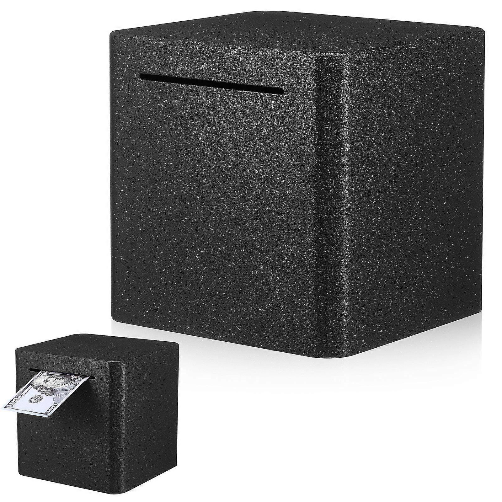 Banks For Adults Piggy Bank Secure Storage Money Saving Box Black 15.00X15.00X15.00CM Stainless Steel Coin and Holder 1Pack