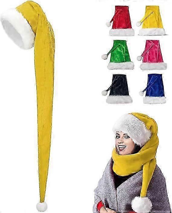 150cm Christmas Hats Santa Hat for Adults,Long Deluxe Velvet Xmas Santa Claus Hat,Unisex Velvet Comfort Christmas Party Hat Thicken Classic Fur