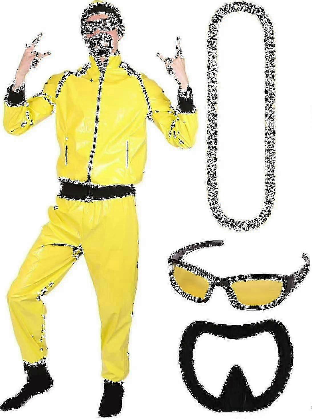 90s Shell Suit Costume for Adults, Yellow Black Retro 1990s Jumpsuit