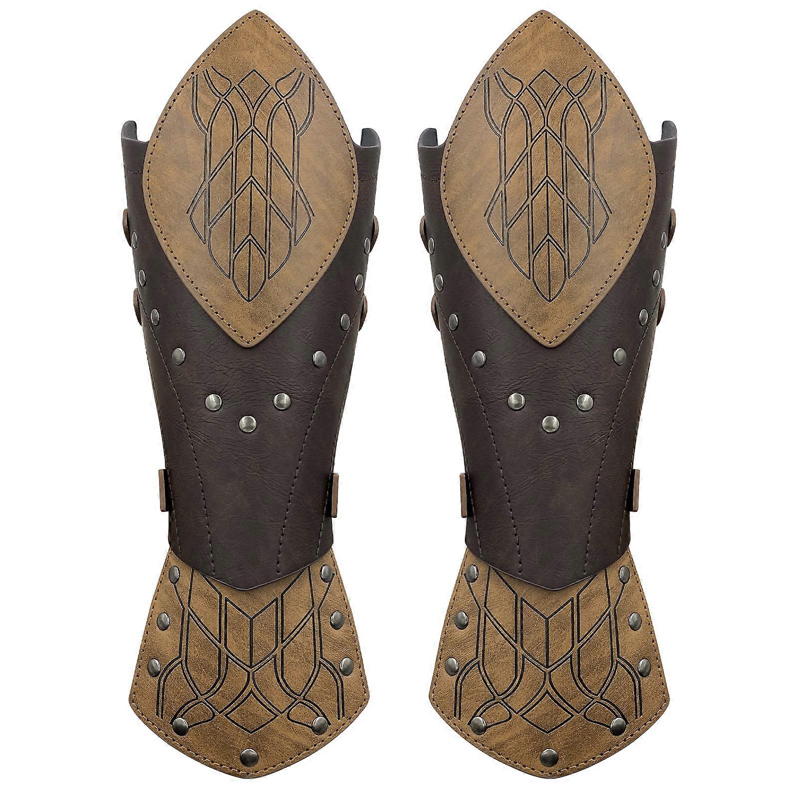 Punk Arm Cuffs for Adult Cosplay Party Vintage Medieval Gauntlets Adjust Armor Bracers Masquerades Costume Arm Decors Light Brown