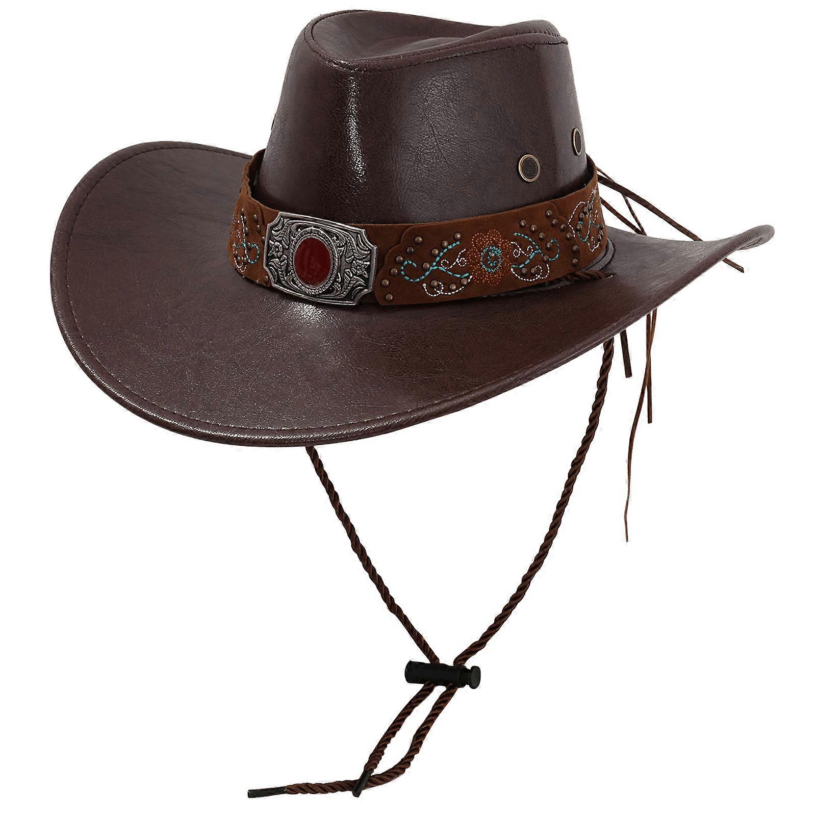Ethnic Wide Brims Hat for Adult Stage Performances Hat Formal Occasion Hat Masquerades Props Dressingup PU Leather Hat brown red
