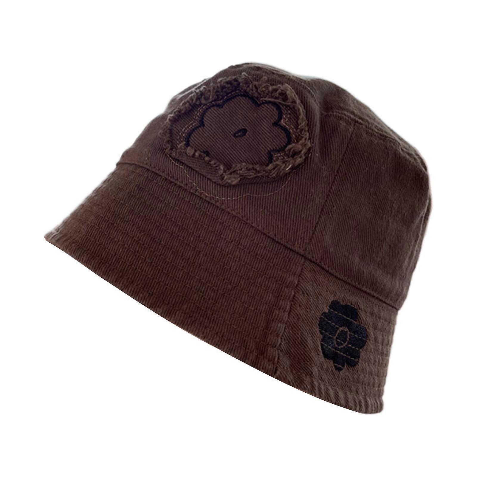Bucket Hat for Adult Teenagers Portable Fisherman Hat Wide Brim Spring Summer Anti-UV Hat with Embroidery Flower Design coffee color