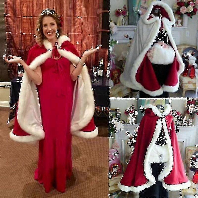 Christmas Costume For Adult teenager Women Hooded Christmas Cloak Mrs Santa Claus Velvet Fur Cloak Capa Red Cloak Cape Party